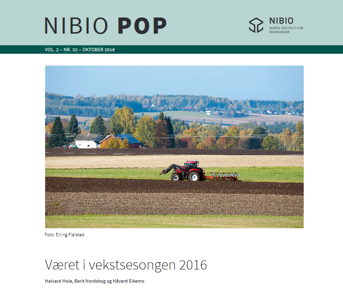 LMT (Landbruksmeteorologisk Tjeneste) lager hvert år en oppsummering av været gjennom vekstsesongen. Årets utgave er nå klar, og utgis som NIBIO POP. PDF-utgaven kan lastes ned her: https://brage.bibsys.no/xmlui/bitstream/handle/11250/2418847/1/NIBIO_POP_VOL_2_NR_32.pdf